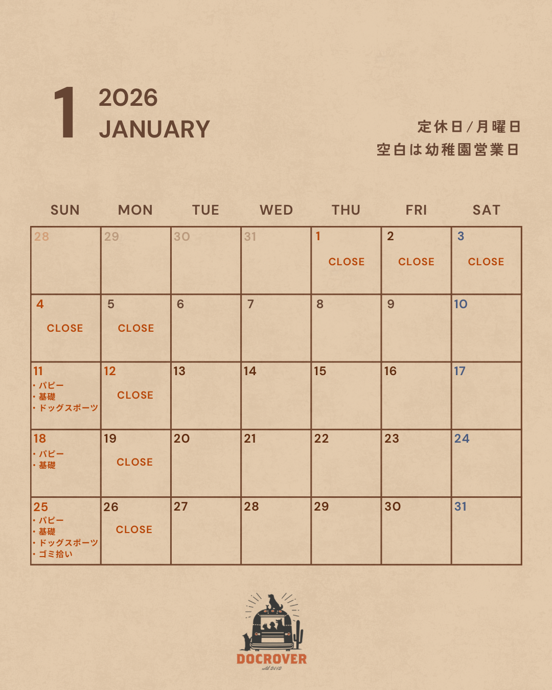 当店は月曜日を定休日とさせていただいております。
